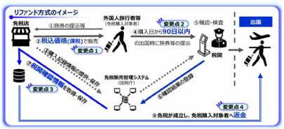 今現在、免税店で免税対象物品等を販売したとき免税価格で決済をしていますが、令和8年11月からは販売時は税込、出国するときに消費税分を返金するシステムになります(リファンド方式といいます)。